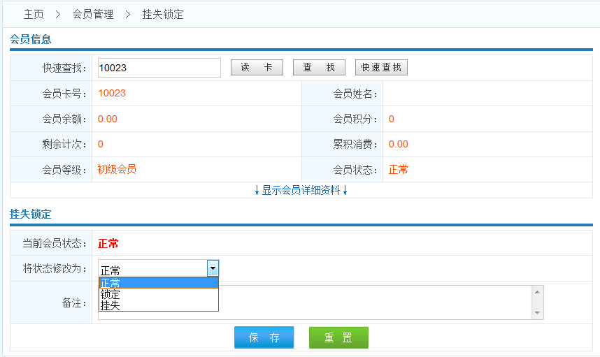 將狀態(tài)修改為:有三種可供選擇的狀態(tài) 正常 掛失 鎖定