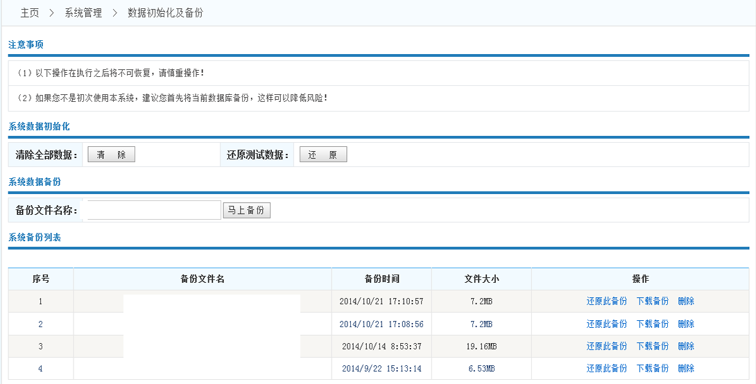 3.系統(tǒng)數(shù)據(jù)備份:在寫入數(shù)據(jù)庫名稱后,點(diǎn)擊馬上備份,備份完成