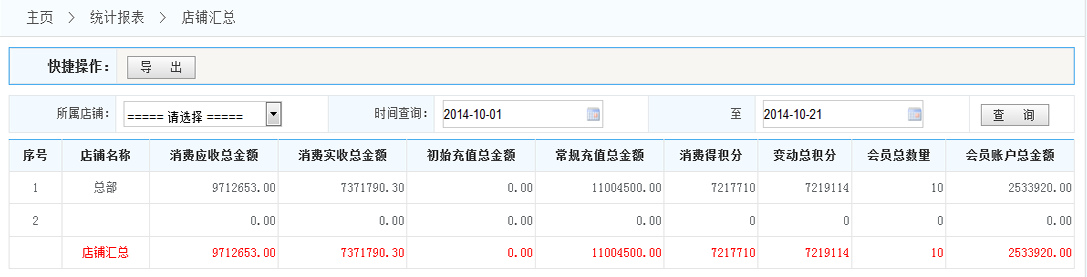 五通一卡通云會員管理系統(tǒng)店鋪匯總統(tǒng)計