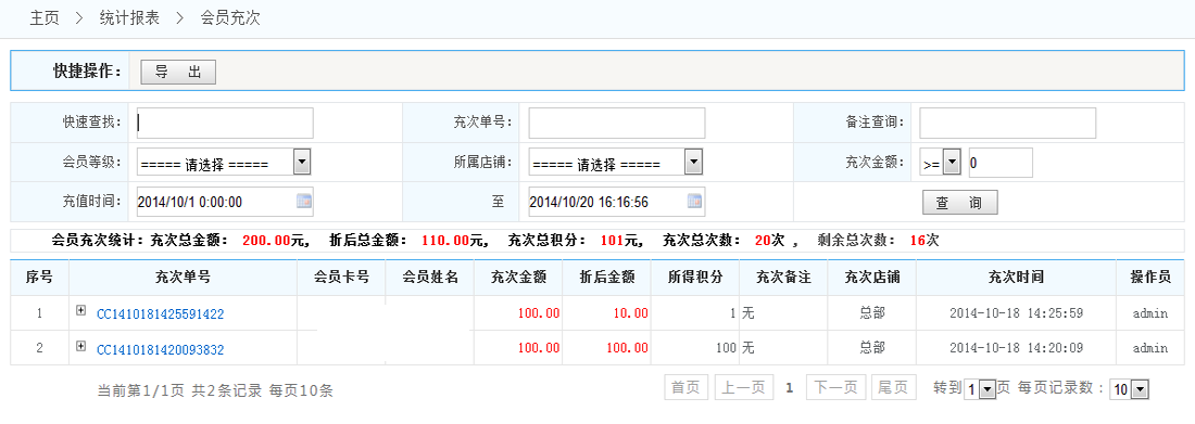 充次統(tǒng)計:查看會員充次記錄
