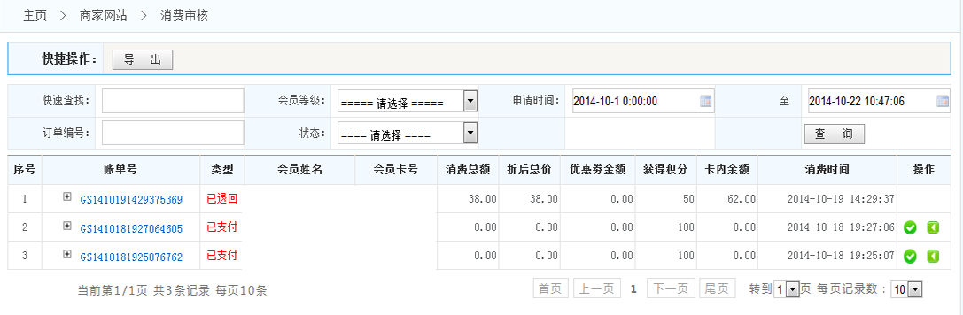通過(guò)審核:點(diǎn)擊通過(guò)審核,此消費(fèi)單才可繼續(xù)進(jìn)行