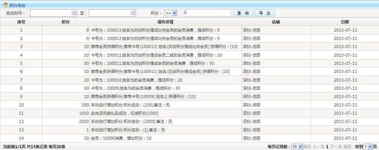 :查詢會員積分變動情況并可以導(dǎo)出Excel文檔